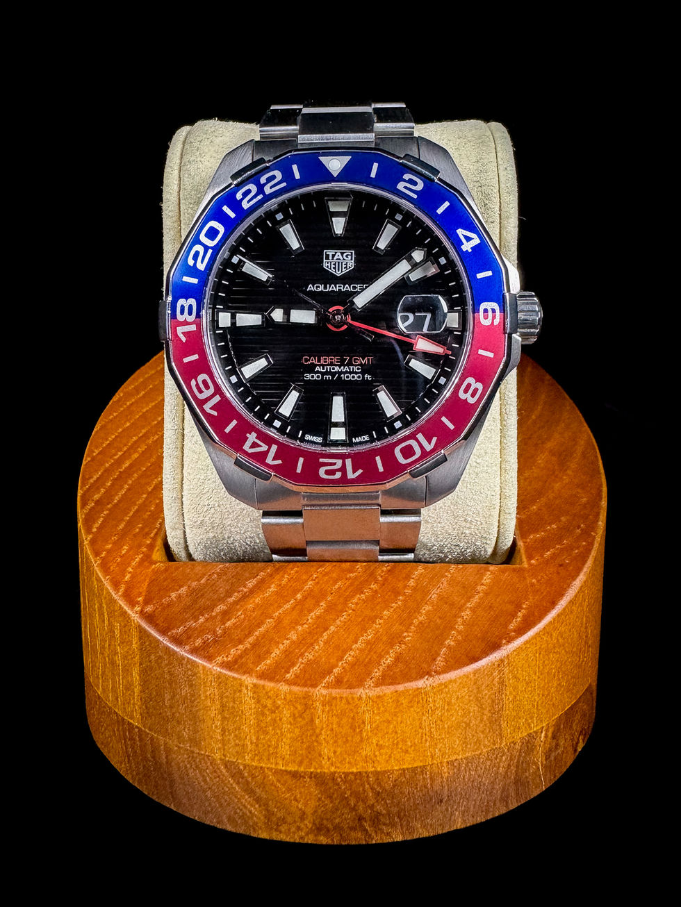 Description: Stainless steel case & bracelet, Black Sunray brushed baton dial, Blue and red bidirectional GMT bezel, Automatic movement with date at 3 o’clock position with push button deployment clasp